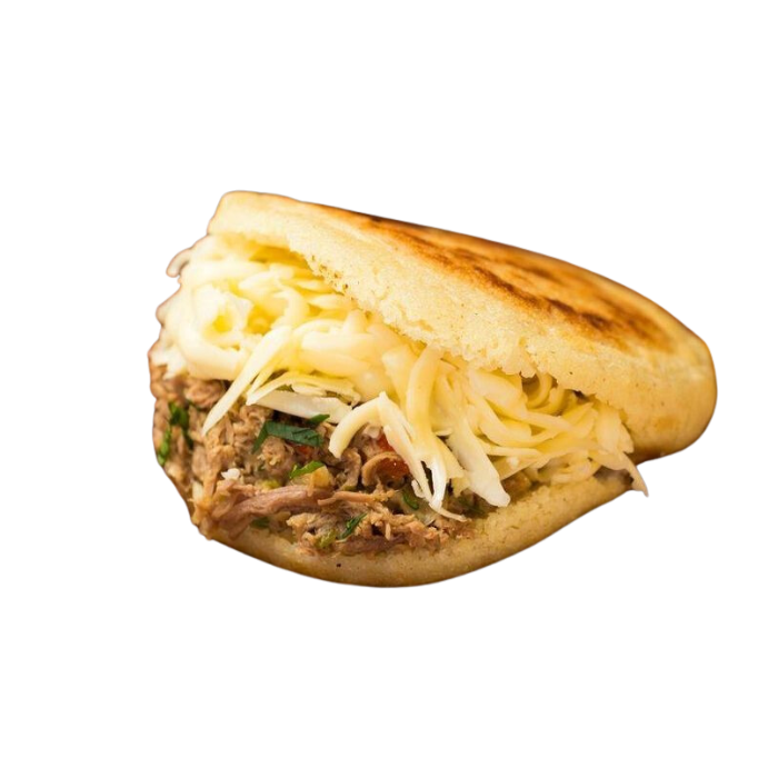 Carne de ternera mechada y queso Amarillo.